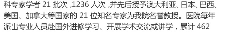 在人才资源上,我院无缝对接北京总部强大医师力量,现有主任医师39名,副主任医师54名,主治医师57名,具有中级以上职称的技术人员达到300余人,专家数量冠绝全国。