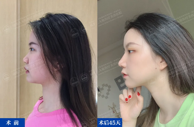 全肋软骨隆鼻,自体材料,精雕细琢,从侧面90°也可以看到立体的鼻尖。术后45天,效果真实自然。
