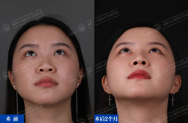 仰视看,鼻尖表现点清晰,鼻孔形态调整适宜。切口隐形且创伤小,恢复快。