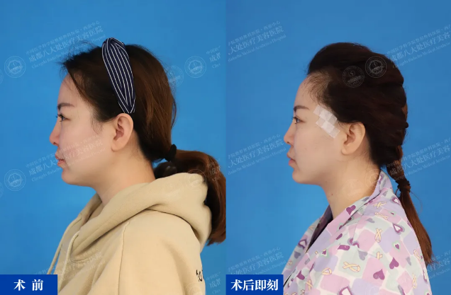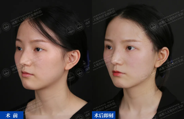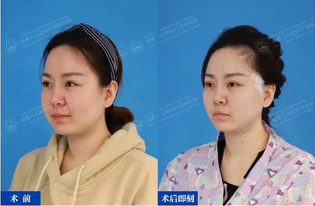 做完即刻,面部创伤小,侧面呈现轮廓V脸感,线条也变清晰了。