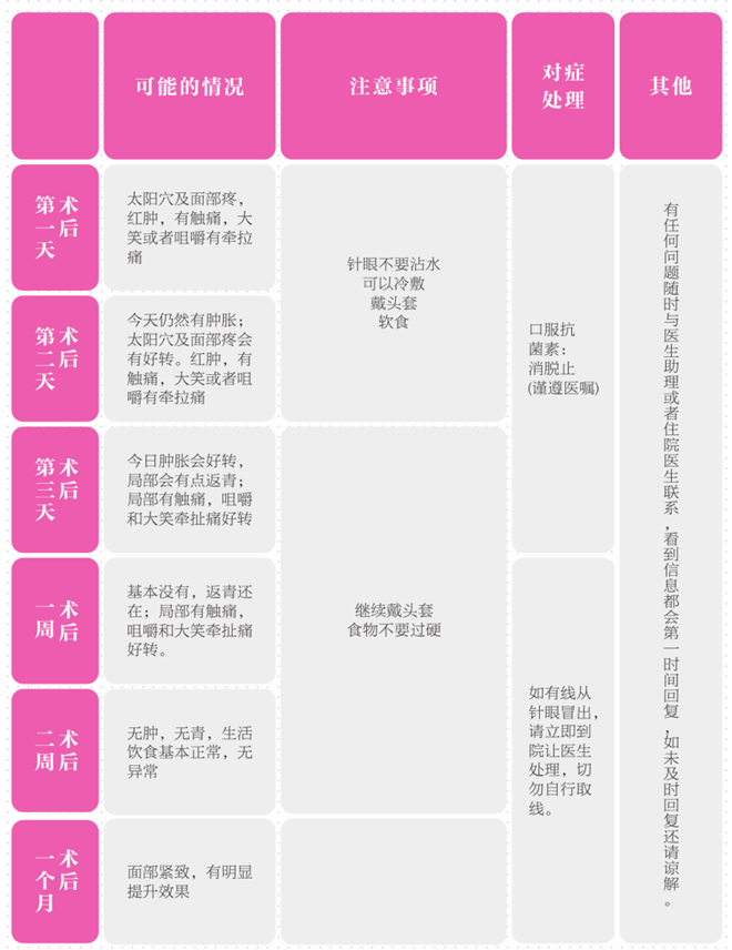 之前总是有新闻爆出:做完埋线后面部凹凸不平、脸会变僵、线头冒出造成感染等。这种一定是和医生的操作手法有关,脸很重要,所以求美者们选择做项目都要去正规的医院和医生进行治疗哦~