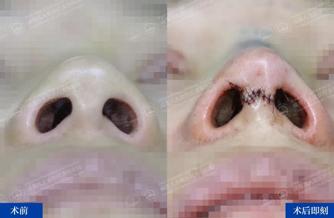 解决方案:将鼻翼软骨进行拉近缝合,此法抬高鼻头,自然也就有缩小鼻翼的效果。