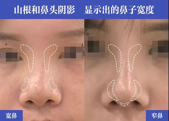 如果鼻根部、鼻背、鼻翼,其中有一个以上的地方比例失调,你的鼻子整体宽度和面积大小都会“增加”。
