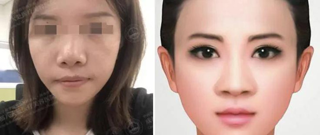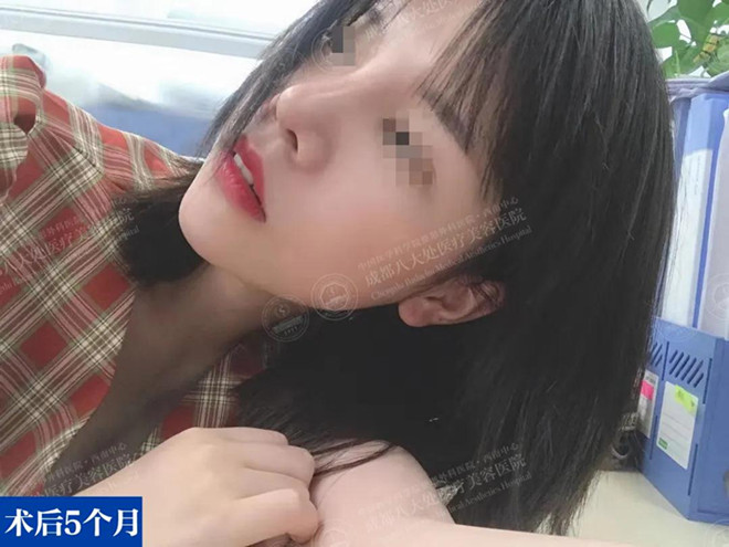 她的鼻背宽度超过了内眦宽度的70%,感觉这个鼻子像是趴在脸上一样。这种鼻子宽的情况是无法通过单纯垫高鼻梁来解决的。