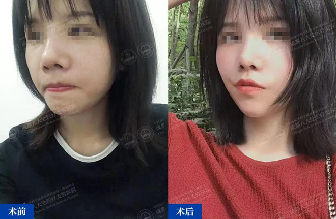 上面那位妹子,她的“大鼻头”感来自于过宽的鼻背和鼻外侧软骨突出。