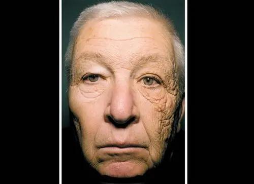 卡车司机,左脸比右脸更长时间经受紫外线的照射,导致半脸老化的问题形成。