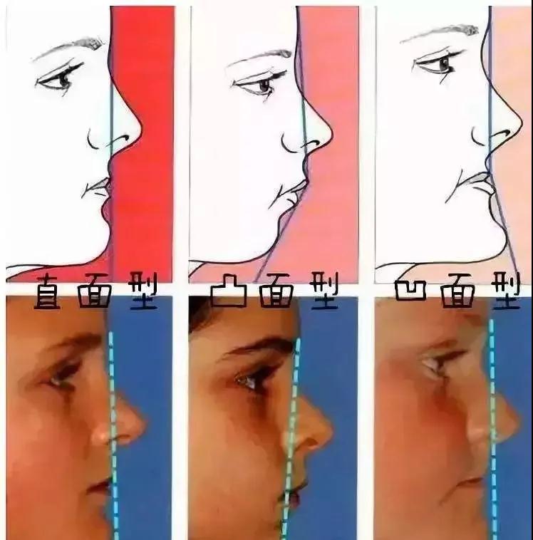 将山根、鼻唇角拐点处和下巴尖,这三点连成一条线。如果三点在一条直线上,属于直面型,面部较为和谐;如果这条线在嘴角处凸出,就属于凸面型,表示嘴比较凸出,易生出法令纹;如果这条线往里凹,就属于凹面型,鼻唇沟很可能较低。
