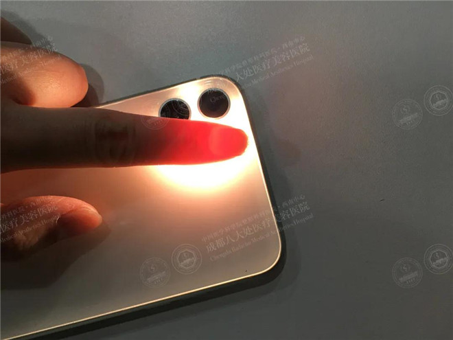 让我们先用手指来做一个实验: 手是真的手,没有打玻尿酸,也没有放假体。但在光的照射下,仍然会有透光感。