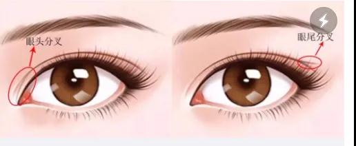 ②本身是三角眼,外眼角天生下垂,容易出现分叉;或者是由于衰老,眼角皮肤松弛,医生在修复过程中处理不当,导致眼尾依然下垂;