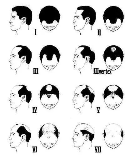 最令人备受打击的雄激素性脱发(简称“雄秃”),是睾酮等雄激素浓度过高,进而导致毛囊萎缩、退化,最终引发的两额、头顶部脱发。