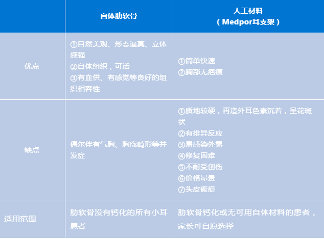 针对耳再造术选取材料方面,学术上一般可分为两种: 一种为传统的用肋软骨造耳,一种为人工材料造耳(如medpor支架)。