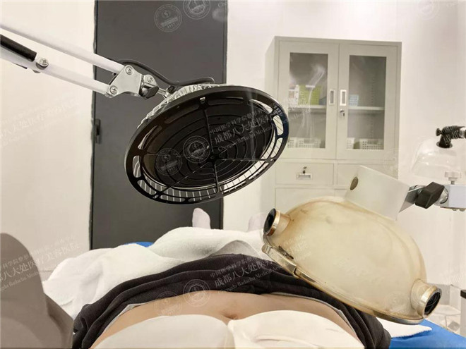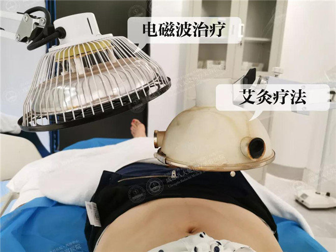 第一次面诊,朱茱医生仔细询问了我的病情并且号脉,诊断我为:寒湿凝滞。先在小腹处用艾灸及电磁波治疗,随后在穴位上给予点压。