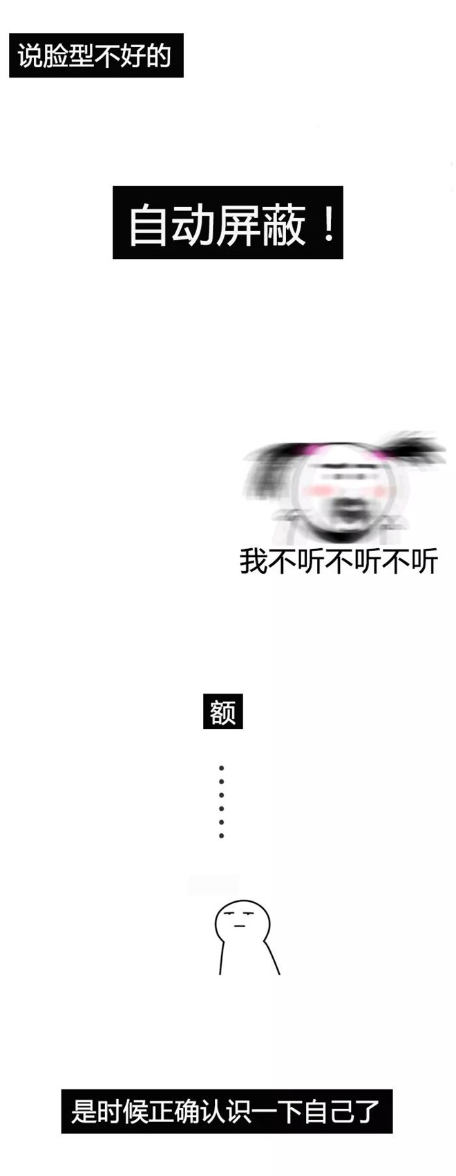 (比如国字脸、方脸,还有常见的面部畸形:“地包天”、“长脸”、“斜脸”、“暴牙”、“开唇露齿”、“露龈笑”、“小下巴”等等。)