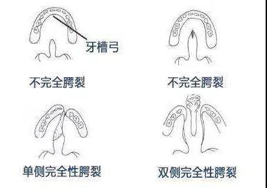 然后是腭裂,腭裂按照解剖部位划分为4种: