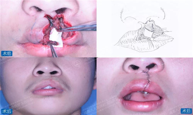 田博:很多患者第一次的手术很成功,但随着时间推移鼻唇部的缺憾(如唇峰上移、唇红凹陷、鼻翼塌陷、鼻小柱倾斜、瘢痕增生等)往往会逐渐显现,这些畸形需要第二次手术才能解决。