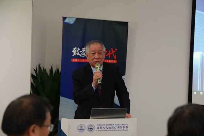 中国医学科学院整形外科医院院长祁佐良教授首先致辞,他对成都八大处建院一周年表示热烈祝贺,肯定了成都八大处在医疗、教学、科研、服务中取得的辉煌成果。八大处入驻成都一年,祁院带来更多思考:“随着医疗技术发展和人民群众消费升级,以医疗美容为代表的美容消费需求持续增长,我们国家的医疗机构满足医疗美容的社会需求,这是摆在机构面前非常重要的责任。在这样的情况下,作为公立的大型整形医院,有责任有义务参与中国医疗美容行业的建设和发展,发挥积极正面的影响和规范的作用。”祁院希望,未来全院上下同心同德,铭记自身使命,与当地权威性机构并肩携手,建立与发展更高的整形标准,实现行业的进一步规范,在新的历史起点上实现新的跨越发展,继续领美中国。