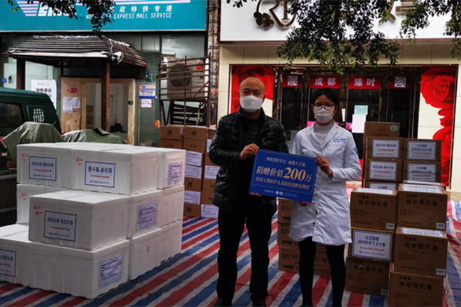 在物资捐赠方面,持续不断的物资迅速调配到多个战线。1月26日,口罩脱销,成都八大处立刻捐出库存一半的口罩;2月1日,武汉医疗物资告急,成都八大处紧急采购10000个口罩捐至抗疫一线;2月16日,新冠重症患者救治设备短缺,成都八大处迅速对武昌区定向捐赠呼吸机一套;2月21日,成都八大处再次为武昌区定向捐赠一次性医用口罩2000只,一次性手套4000只。除此之外,考虑到出川入鄂医疗救助队由于长期佩戴无菌隔离手套加上超出正常频次无数倍的清洁消毒,医护口罩勒痕等可能会导致皮肤脱皮开裂,增加皮肤溃破感染新冠病毒的风险,成都八大处联合四川省医学会由皮肤科迅速制定出药剂治疗配方,于3月1日,针对支援湖北医疗队捐赠价值200万的防皮损物资。
