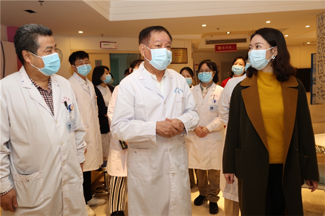 祁佐良教授在丁艳副院长陪同下参观海南省第五人民医院医学美容部。