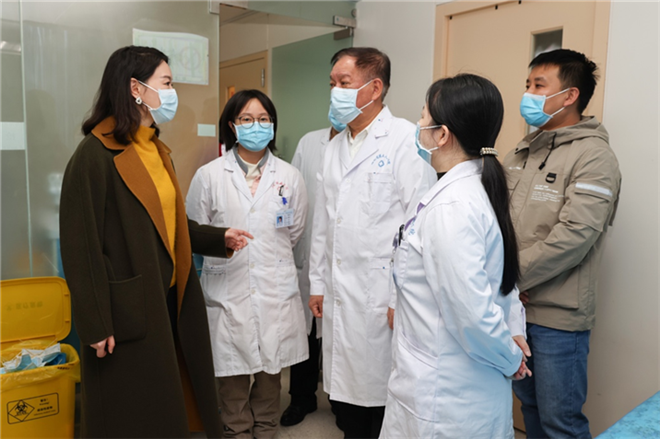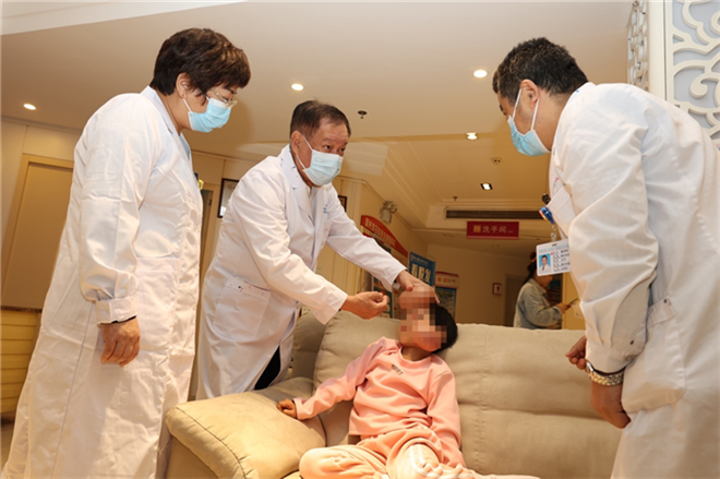 走访中,祁佐良教授针对一位面裂患儿进行了现场看诊。祁教授听取了主治医生翟培明主任对患儿基本病情及治疗方案的介绍,详细询问用药量及用药周期,根据多年临床经验,对患儿诊疗情况作出研判,认为目前的方案是稳妥合适的。