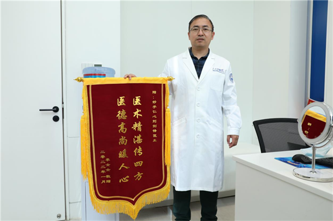 (刘剑锋医生展医德风采,患者送锦旗致谢)