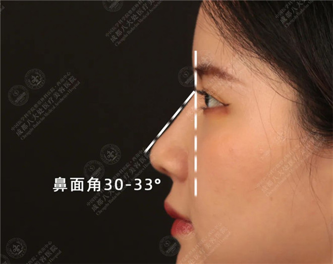 第一是鼻面角,这个角度可以简单理解为鼻背与侧面平面形成的角度,这个角度在30-33°最佳。