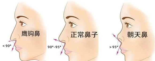那如果这个角度如果过大,就会造成朝天鼻,过小则会成为鹰钩鼻。