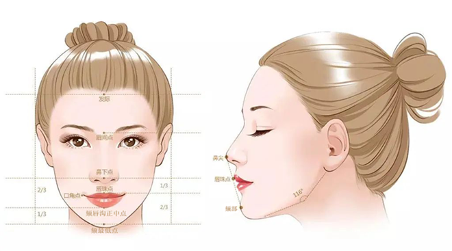根据人体美学的黄金比例来说:从正面看,理想的下巴长度约为面长的1/6;从侧面看,下巴最下点位置应与眉心在同一垂直线上。