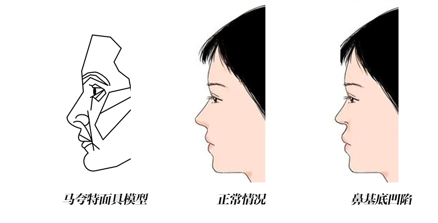 可以看出,鼻基底位置,左侧正常情况下的侧脸更与面具贴合;且右侧鼻基底凹陷后,更显嘴凸。