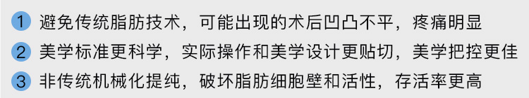 八大处脂肪专家团特意采用手摇离心机处理脂肪,时间和速度均优于传统,保护脂肪组织的完整性同时有效去除无效物质,效果持久。